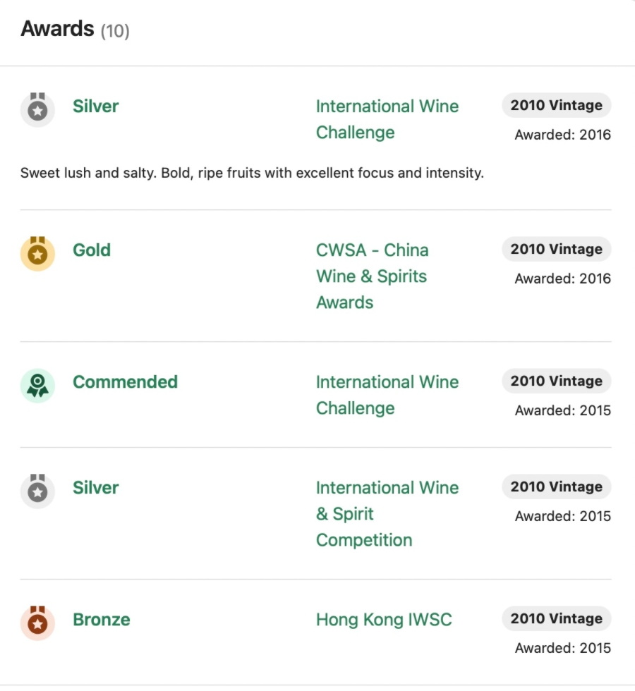 ♥还曾多获得国际葡萄酒与烈酒大赛(IWSC)的“年度国际红葡萄酒生产商” (International Red Producer of the Year)大奖,以及旧金山国际葡萄酒大赛的“年度国际酒庄”荣誉。