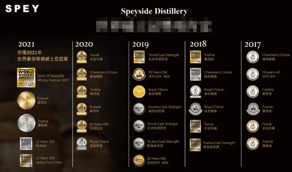 *除世界威士忌大赛和国际烈酒竞赛之外,SPEY威士忌不断攻占不同酒类赛事的榜单,获得世界威士忌众多奖项的肯定。