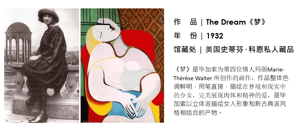 艺术大师毕加索为情人Marie所创作的画作《梦》,在梦境和现实中的少女完美体现肉体和精神的爱,此画在2013年以1.55亿美元成交,成为当今世上非常昂贵的画作之一 。