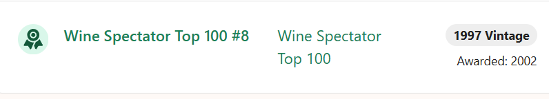酒款还曾三度入围WS百大榜单!今天带来的1997老年份便是其中之一,适逢大年加持(WA95!),斩获JS & WS 96高分好评!更荣登WS百大第8名!真的无需犹豫!