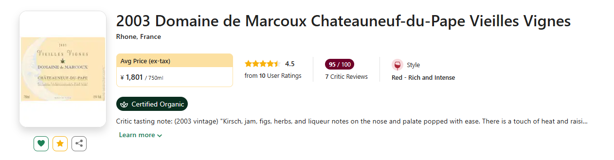 【低均400+!WA准满分旗舰超老藤特酿!教皇新堡历史见证者!】Domaine de Marcoux Chateauneuf-du-Pape Vieilles Vignes 2003