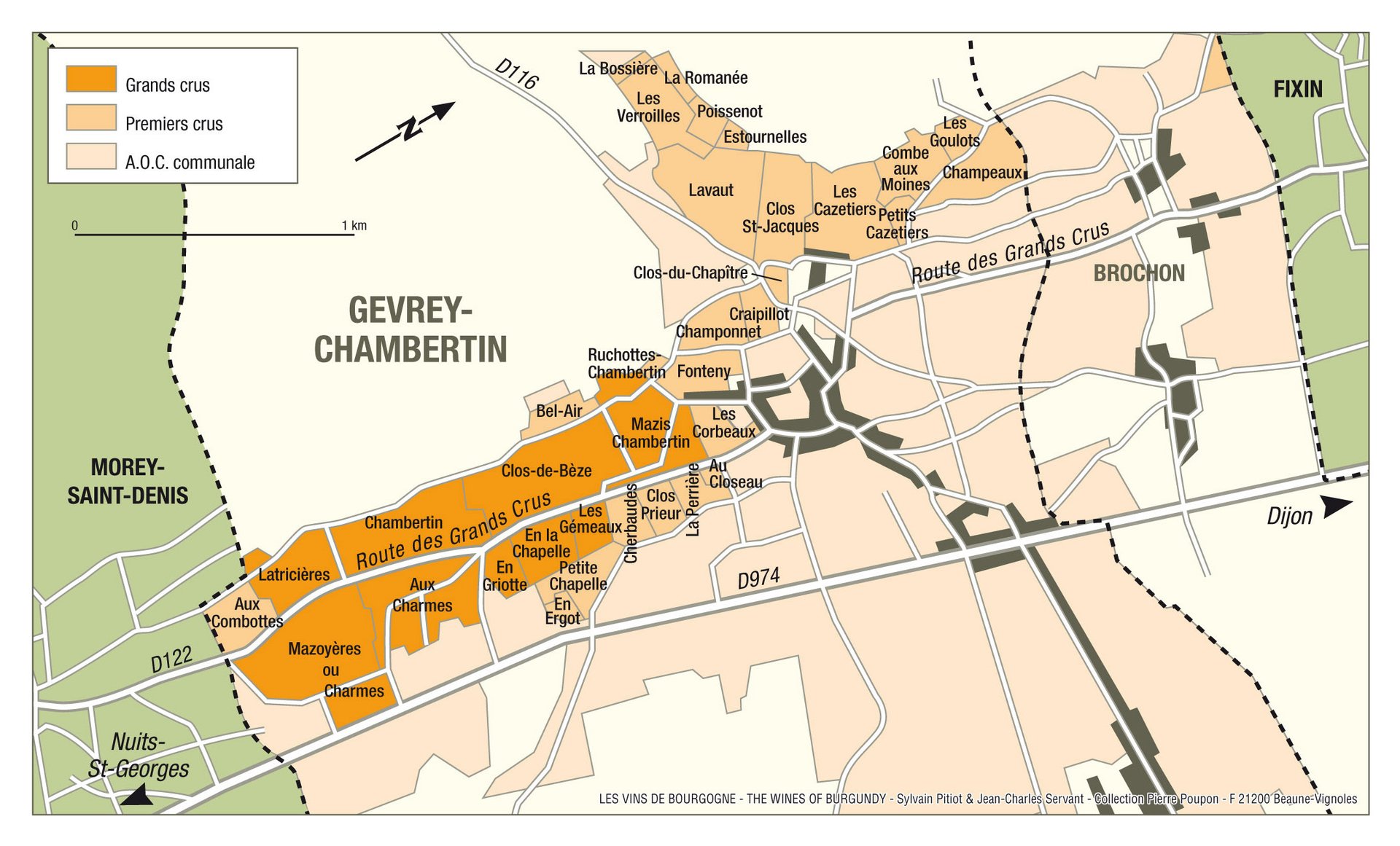 Griotte-Chambertin位于Gevrey-Chambertin特级田种植区域的底端偏中心区域,夹在Charmes和Chapelle两块特级田中间,上方便是Chambertin和Clos de Bèze两块特级田。在Gevrey村所有特级园中光热充足。