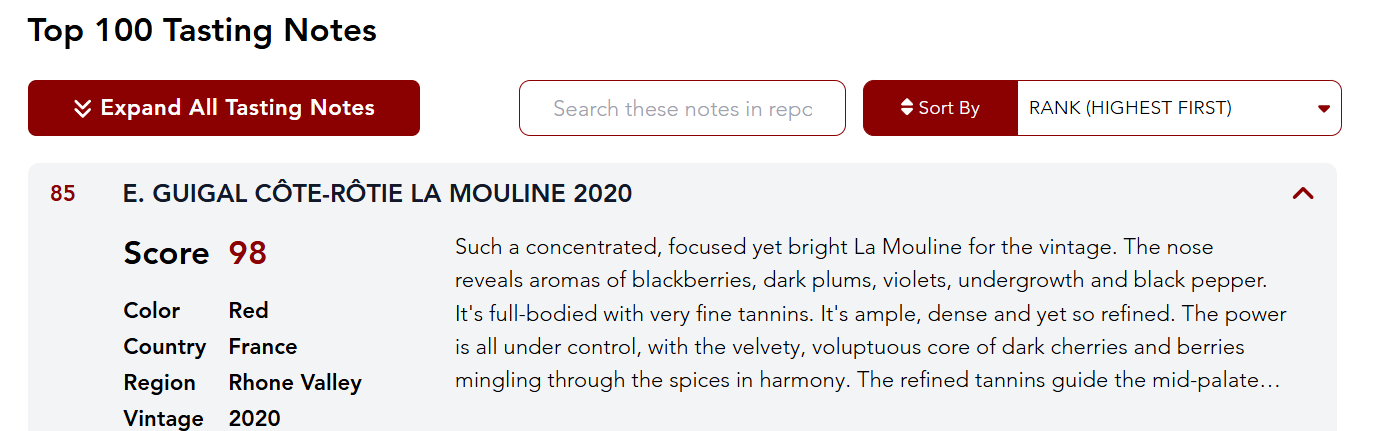 RP曾表示:“E.Guigal的罗纳河谷、优秀的教皇新堡、精致美丽的Condrieu和美好得不可思议的Cote-Rotie,这个世界上,再也没有其他酿酒师能像Marcel Guigal一样,无论在任何气候,任何风土下,都能酿制出这么多款令人叹服的高品质好酒。”