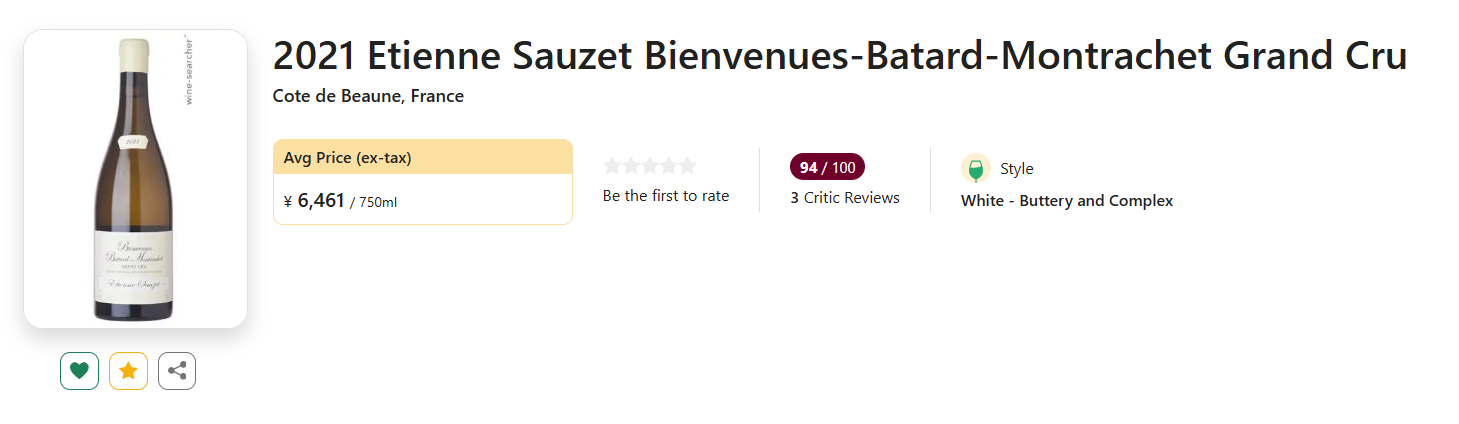 【低均近700!Puligny三大家之一 | AM:“闭眼入”!】Etienne Sauzet Bienvenues-Batard-Montrachet Grand Cru 2021