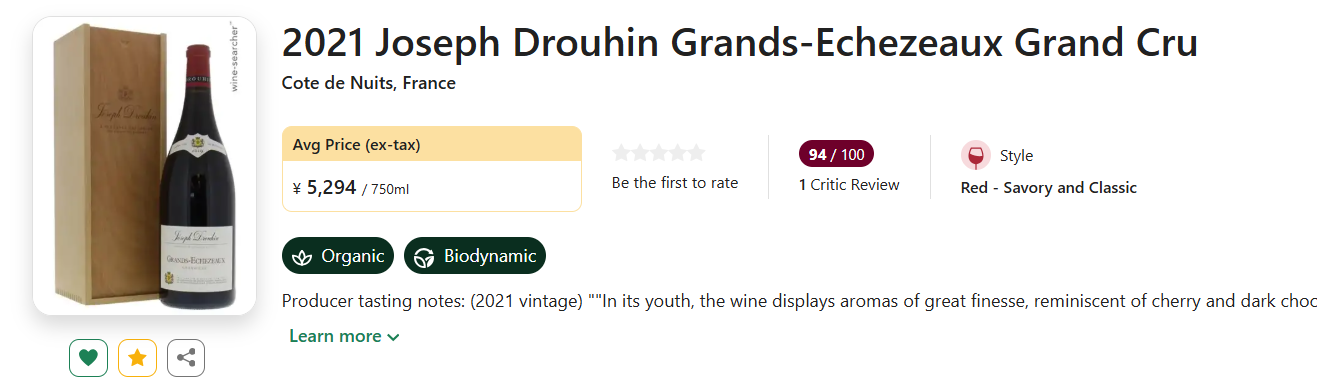 【低均近1300!CC二星名家,优年大依瑟索特级园!】Joseph Drouhin Grands-Echezeaux Grand Cru 2021