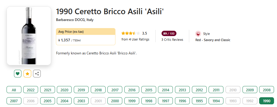 【低均好价!皮埃蒙特大名家,超级大年单一园】Ceretto Bricco Asili 'Asili' Barbaresco DOCG 1990