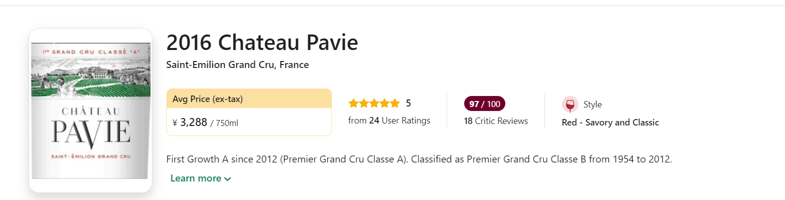 【三个满分+世纪大年柏菲正牌丨圣埃美隆一级A等名庄】Chateau Pavie 2016