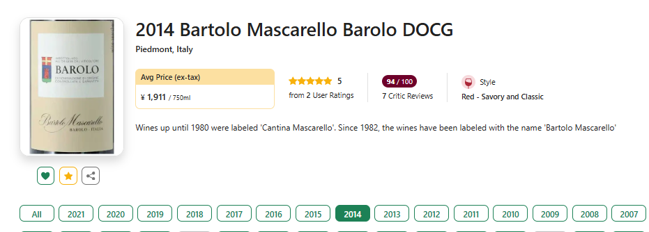 【低均好价!意酒老牌名庄,高分盛赞Barolo!】 Bartolo Mascarello Barolo DOCG 2014