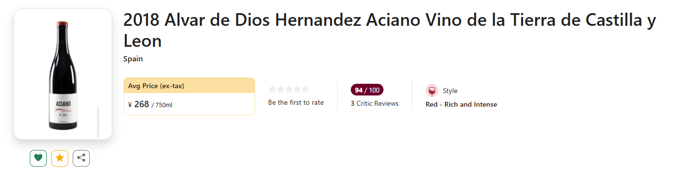 【“旧世界”中的“新世界”,颠覆传统不要厚重要优雅】Alvar de Dios Hernandez Aciano Vino de la Tierra de Castilla y Leon 2018