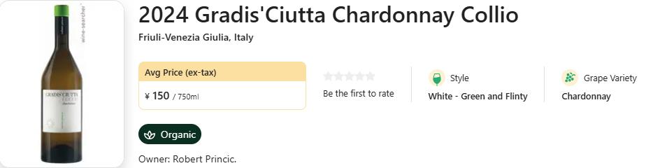 【国均6.7折!Friuli精品名庄“小绿帽”,KO大赞招牌霞多丽!】Gradis'Ciutta Chardonnay Collio 2024 单支/双支/六支原箱