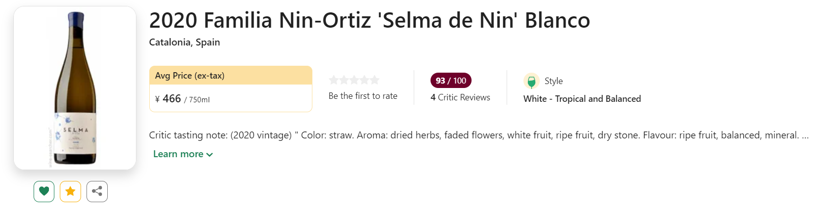 【可以代表西班牙高端干白的大作 | “离经叛道”给你从未有过的体验!】Familia Nin-Ortiz 'Selma de Nin' Blanco 2020