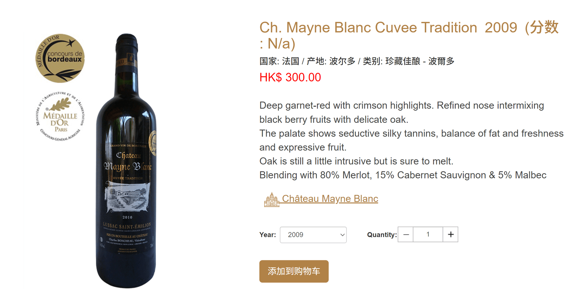 【还挺年轻的2014年来了!老饕必入!白菜价波尔多老酒!】Chateau Mayne Blanc Lussac-Saint-Emilion 2014 六支原箱
