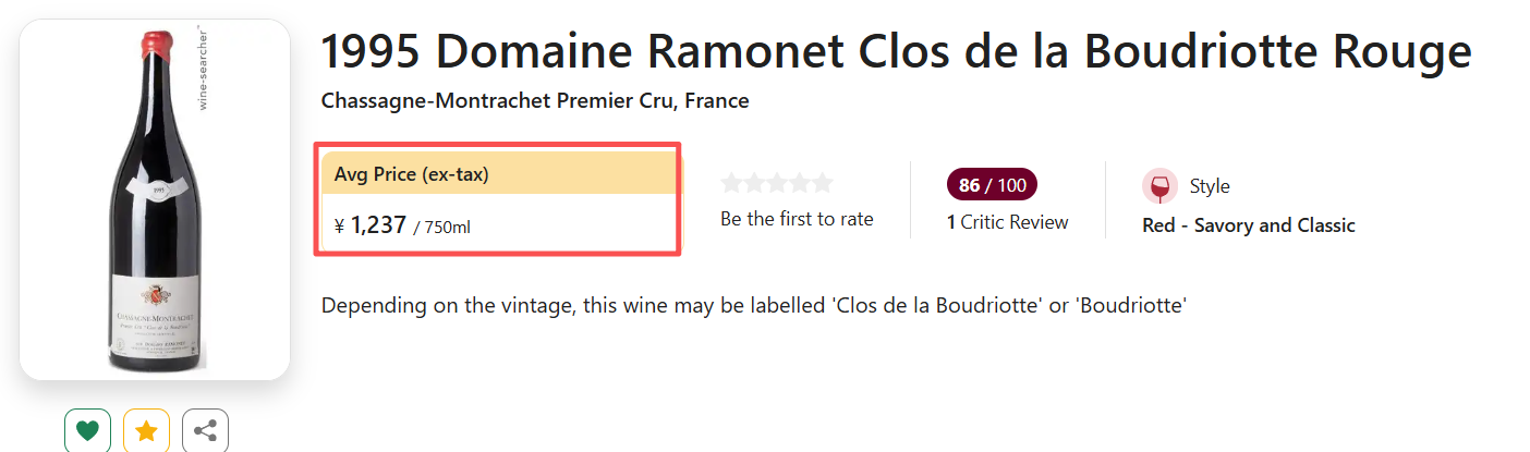 【国均8.1折!CC三星膜拜庄,罕见老年份CM一级园红!】Domaine Ramonet Clos de la Boudriotte Rouge, Chassagne-Montrachet Premier Cru 1995 现货