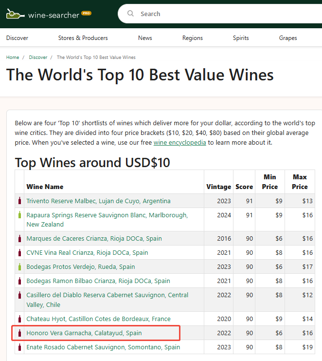 - 上榜Wine-Searcher“全球Top 10性价比榜单”(10美元价位级)