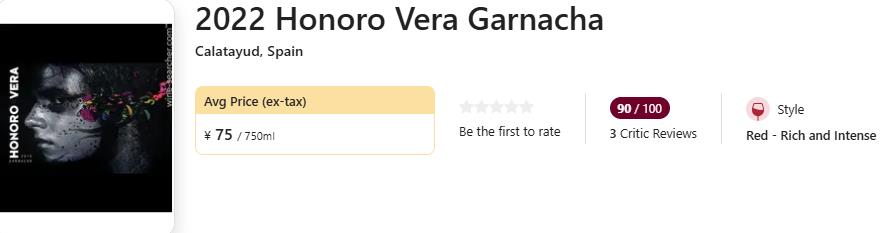 【低均好价!性价比之神降价回归!登上奥斯卡的殿堂级口粮!】Honoro Vera Garnacha 2022 单支/双支/六支原箱