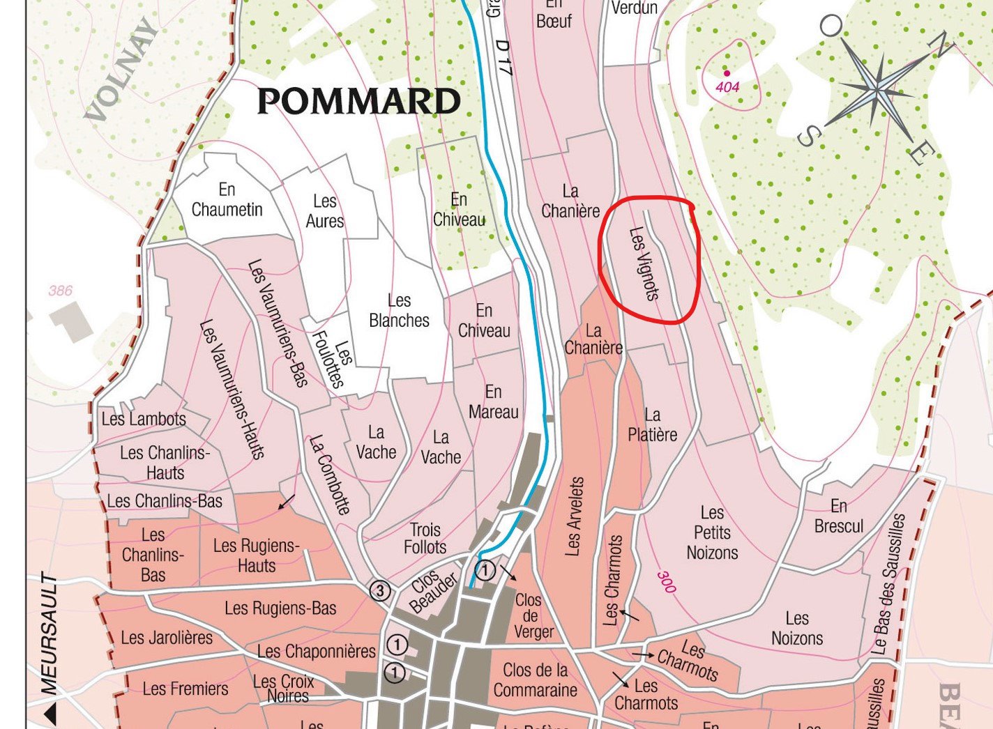 此款酒来自Pommard村海拔350米的略地"Les Vignots",毗邻一级园Les Chaniere和La Platiere,种植着50年的老藤,在全球变暖的影响下葡萄比下方的一级园更加容易成熟,并且略地朝西南,有着更多的光照,出产的葡萄风味和香气更加浓郁,品质也是不输一级园。