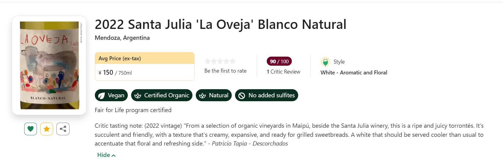 今天带来的是酒庄经典'La Oveja'有机特浓情,2022新鲜年份斩获WA91+、JS91、PT90分好评!