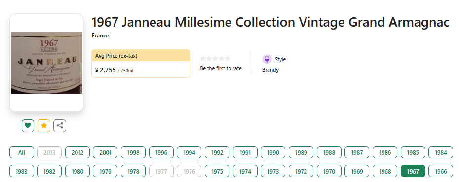始于1851,法国烈酒知名品牌、雅文邑历史谱写者之一的Janneau!窖藏年份酒系列—60年代单一老年份雅文邑!国均7.1折起的超值好价!