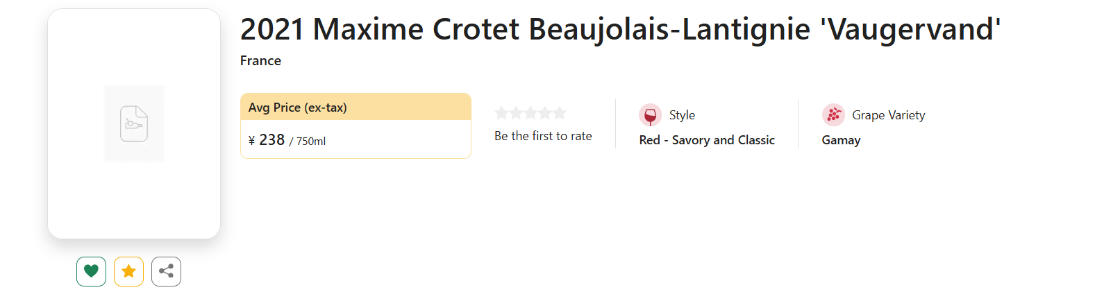 【自然派超牛黑马!稀缺货源】Maxime Crotet Beaujolais-Lantignie 'Vaugervand' 2021