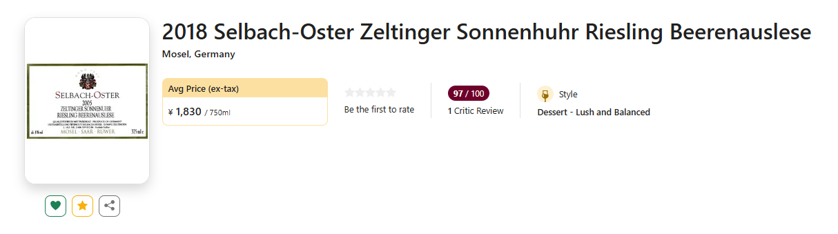 【国均6.2折!Vinum年度酒庄 & JS德国百大酒庄,高分“日晷园”BA!】Selbach-Oster Zeltinger Sonnenuhr Riesling Beerenauslese 2018 375ml 酒云直采
