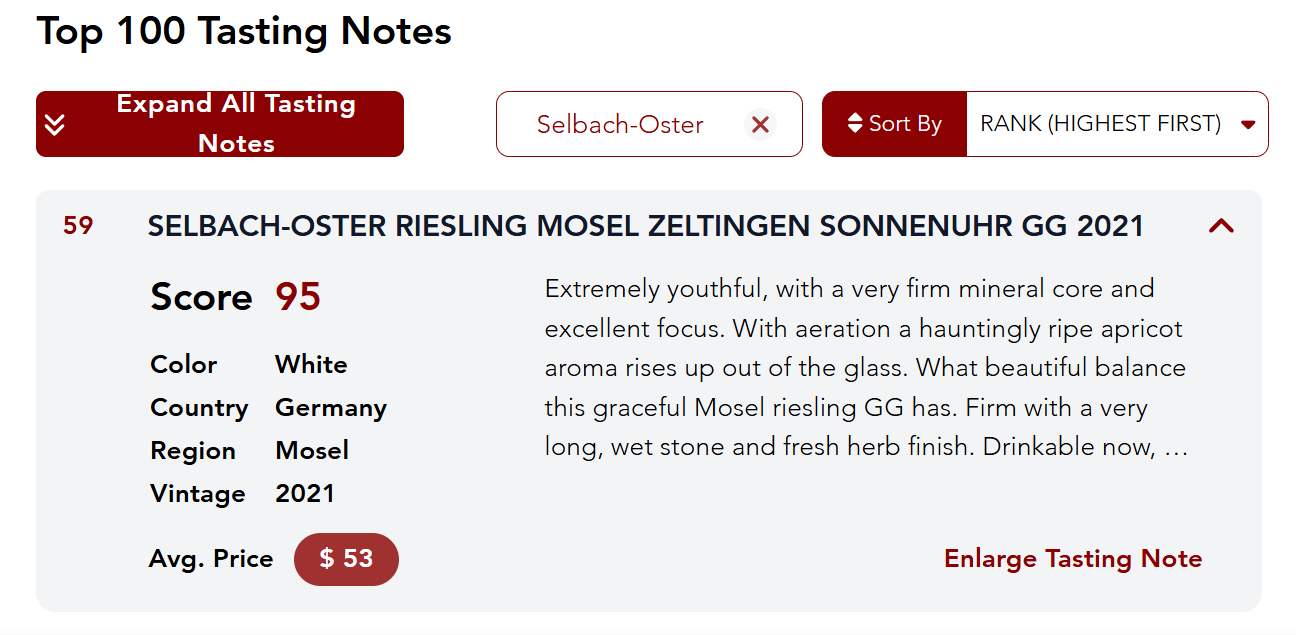 酒庄不仅获得Vinum 2024年度Mosel地区年度酒庄,更是在2021-2023年蝉联JS年度德国百大,而今天这款2021年份日晷园GG就在其中,更有WA 95-97、JS 95、MFW 93+等名家高分背书!