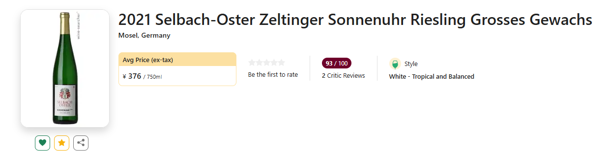 【国均8.9折!Vinum 年度酒庄&JS年度德国百大——名庄“日晷园”GG!】Selbach-Oster Zeltinger Sonnenuhr Riesling GG 2021 酒云直采 现货速发