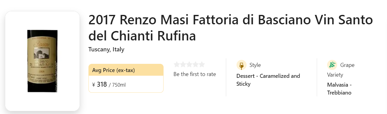 【国均4.7折!甜渣福利!超珍稀“圣酒Vin Santo”来了!】Renzo Masi Fattoria di Basciano Vin Santo del Chianti Rufina 2017 375ml 酒云直采