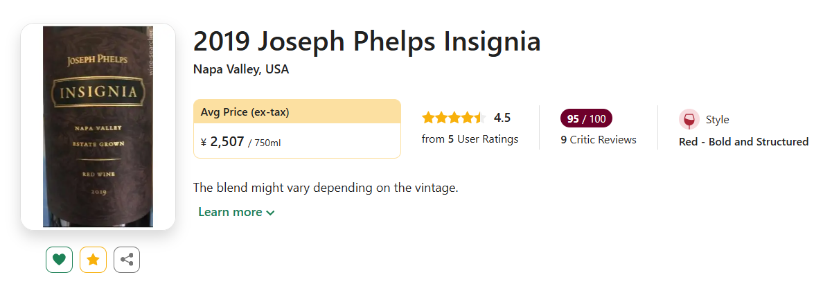 【低均300+!准满分膜拜酒旗舰款勋章!】Joseph Phelps Insignia Napa Valley 2019