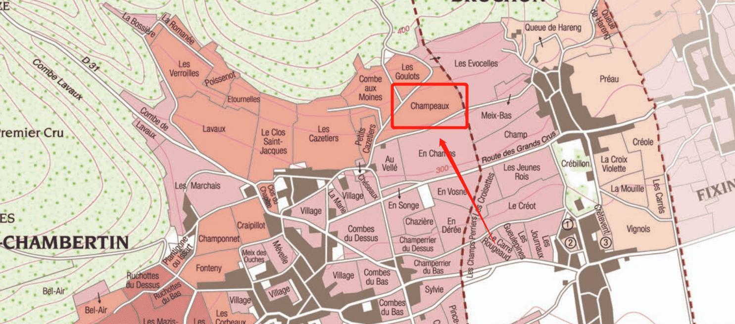 Les Champeaux是Gevrey-Chambertin北部备受推崇的一级园,高海拔梯田与Combe de Lavaux山谷带来的冷凉气流,造就了其独特的微气候。这里土壤贫瘠,表层布满砾石与卵石,排水性极佳,出产的葡萄酒兼具力量感与矿物气息。正因为如此卓越的风土,这里汇聚了Fourrier、Denis Mortet、Benjamin Leroux等众多名庄。可以说,拥有Les Champeaux,本身就意味着品质的保证,这一点已得到业内专业人士的普遍认同。