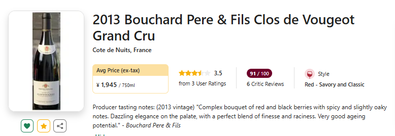 【直降500!国均7.2折!CC二星庄宝尚父子,灵魂伏旧园!】Bouchard Pere & Fils Clos de Vougeot Grand Cru 2013