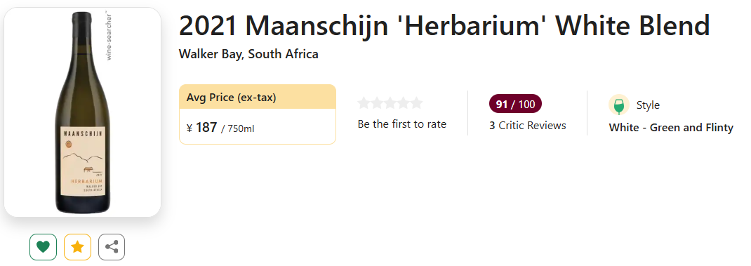他们的Herbarium系列,旨在用酒液封存Walker Bay的山海精魂。而这支2021年份的白葡萄酒,正是他们理念的至臻展现——它不仅仅是一款酒,更是一瓶可以饮用的、充满生命力的“风土标本”。