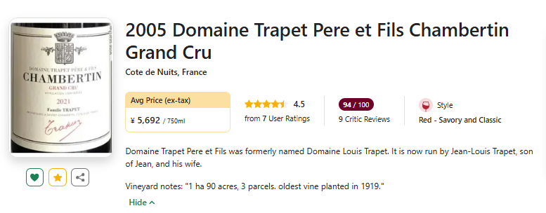 【低均近700!准满分世纪大年!勃艮第帝王“钢裤”!】Domaine Trapet Pere et Fils Chambertin Grand Cru 2005