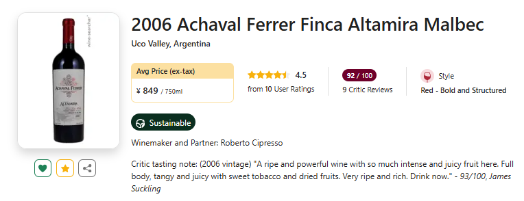 【低均好价!阿根廷“马背”标杆,2008年度WS百大!】Achaval Ferrer Finca Altamira Malbec 2006