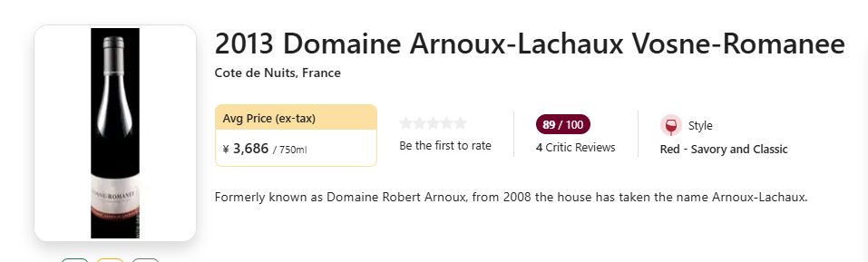 【清仓!低均近700!勃艮第新晋膜拜,酒圈大热“小勒桦”!】Domaine Arnoux-Lachaux Vosne-Romanee 2013 现货