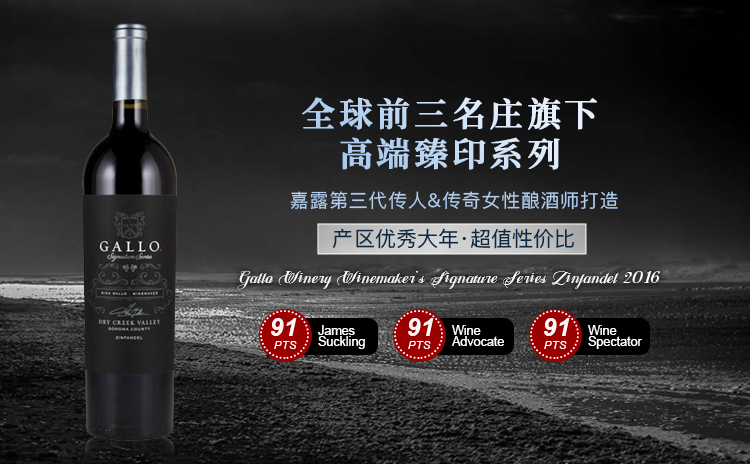【挥泪清仓!国均4.9折!嘉露高端臻印系列,奔放甜美正值适饮顶峰期!】Gallo Winery Winemaker's Signature Series Zinfandel 2016 单支/双支/六支装