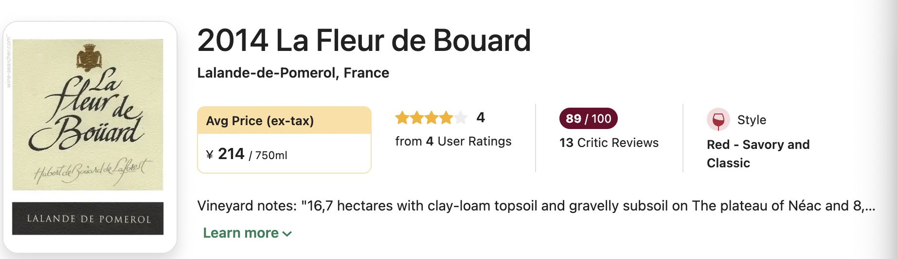 酒庄旗下La Fleur de Bouard · Le Plus发行的首个年份(2000年)就获得了权威酒评家罗伯特·帕克的99分的准满分好评,在国际上掀起一阵狂风!