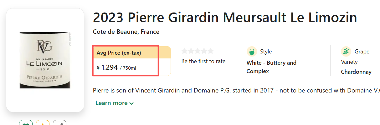 【炙手可热PVG,本该成为一级园的知名略地!】Pierre Girardin Meursault Le Limozin 2023