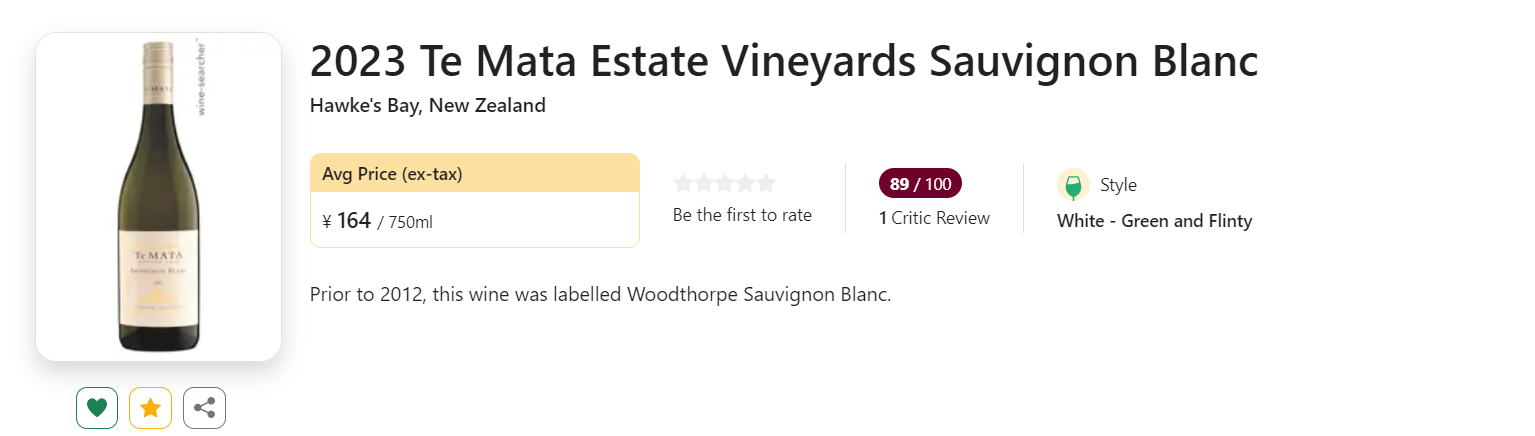 【国均7.8折!新西兰之光,霍克斯湾长相思典范!】Te Mata Estate Sauvignon Blanc 2023