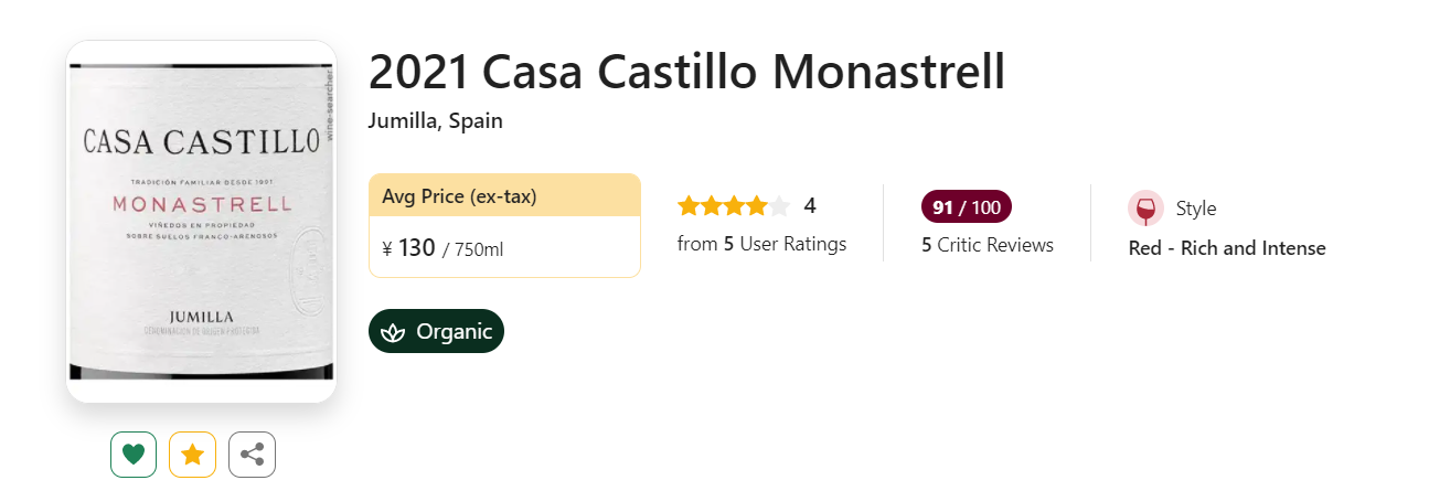 Jumilla先驱名庄,Monastrell专家!此酒款曾入选WE百大!并且几乎每个年份WA评分都在90分以上!