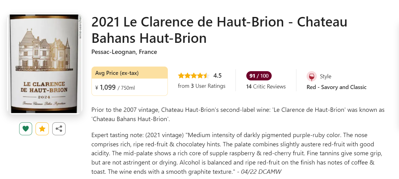【一级庄惊艳副牌,高分小侯伯王!】Le Clarence de Haut-Brion 2021