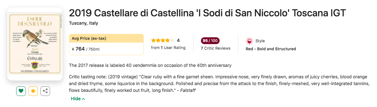 【国均6折!低均300多元!“小鸟庄”旗舰超托】Castellare di Castellina 'I Sodi di San Niccolo' Toscana IGT 2019 直降120元!单支/双支/六支原木箱