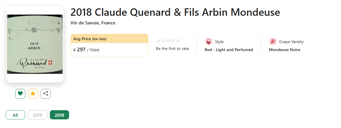 【滴血亏本价!| 一起去法国萨瓦探索宝藏吧!】Claude Quenard & Fils Arbin Mondeuse 2018