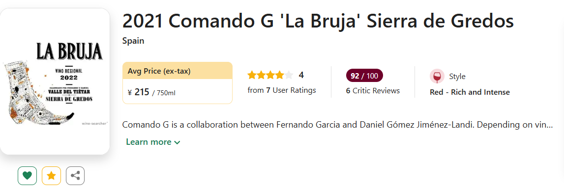 【国均6.5折买WA95老藤歌海娜!WA为何建议老饕们成箱囤货?!】Comando G 'La Bruja' Sierra de Gredos 2021 单支/六支/十二支