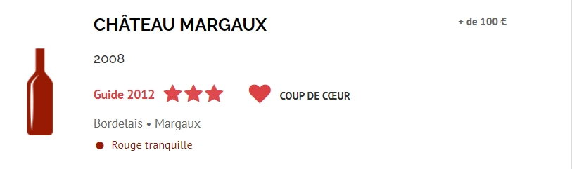 2008年份斩获《阿歇特葡萄酒指南》三星心动推荐,获得WCI 96、BD 18.5等名家高分好评!