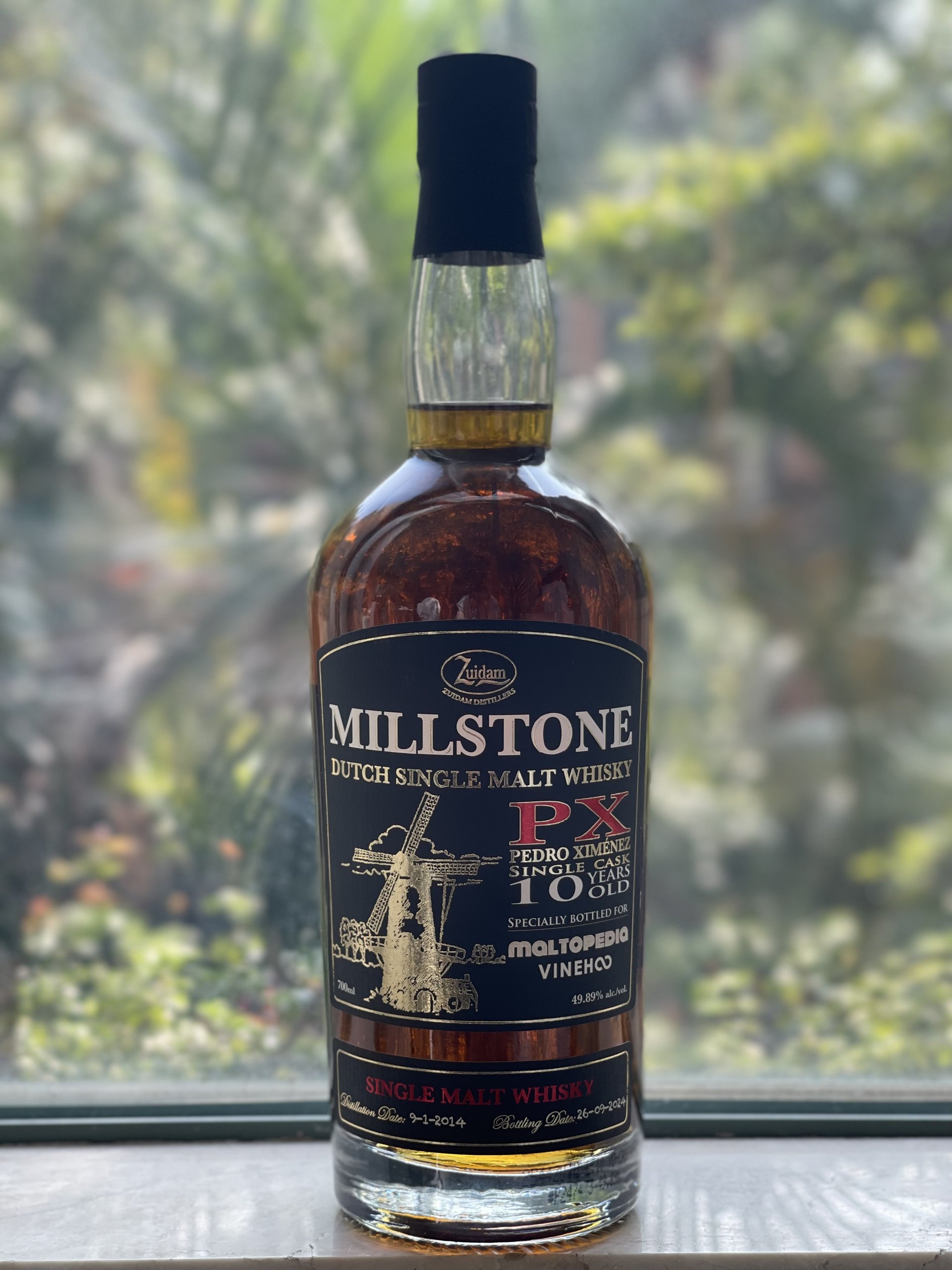 酒款来自荷兰威士忌大热名家,赞德Zuidam酒厂旗下“赞德磨石(Millstone)”——PX雪莉单桶熟化10年单一麦芽威士忌!酒液蒸馏于2014年1月9日,于2024年9月26日装瓶,以49.89%ABV桶强装瓶,非冷凝过滤,不添加焦糖色,限量装瓶330瓶!