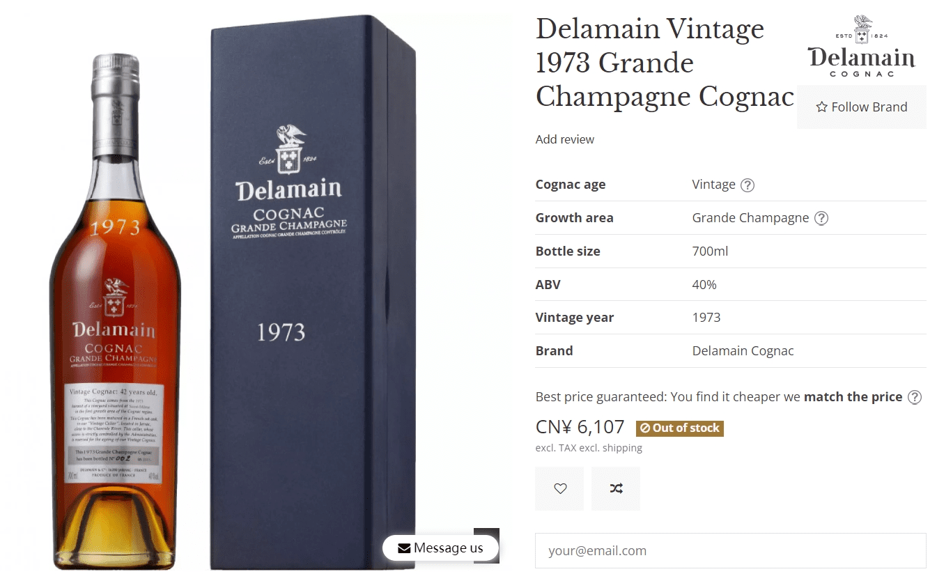 * 1973年卓越老年份生产,因“Angel’s Share”损耗,仅装瓶396瓶!