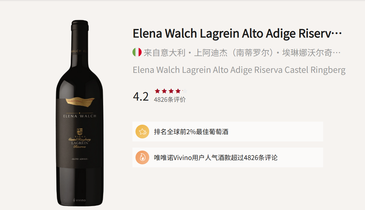 本次带来酒庄经典作Ringbergd单一园红!不输酒庄招牌琼瑶浆的卓越品质,强推入手!Vivino4.2(4826个评分)