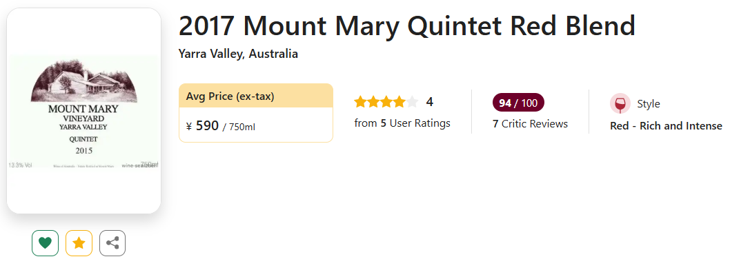 【国均8.5折!JH年度酒庄,兰顿“First Classified”膜拜酒!】Mount Mary Quintet Red Blend 2017
