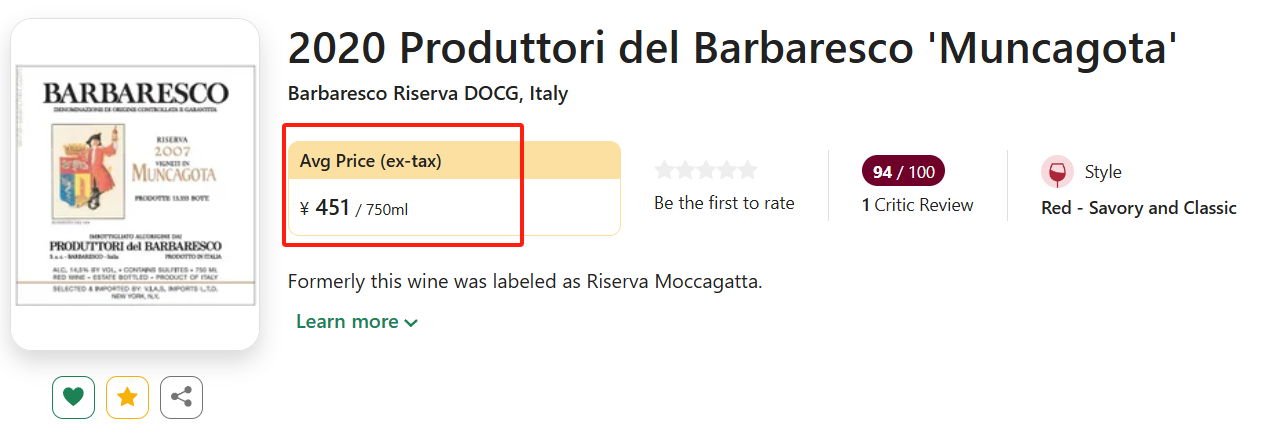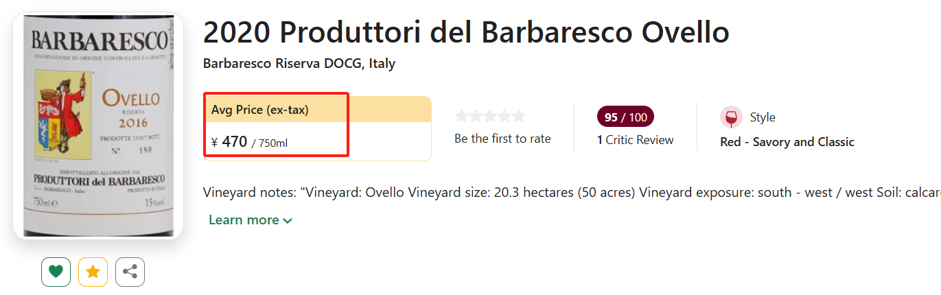Vinous:这是一款浓郁醇厚的佳酿。首先散发出来的是石墨、碎岩、干香草和雪松的香气。这个单一园往往酿造出风格更为线性的巴巴莱斯科,这款酒也是如此。不过,2020年份在口感中段也有着显著的深度和层次。这是一款正在酝酿中的绝美佳酿。