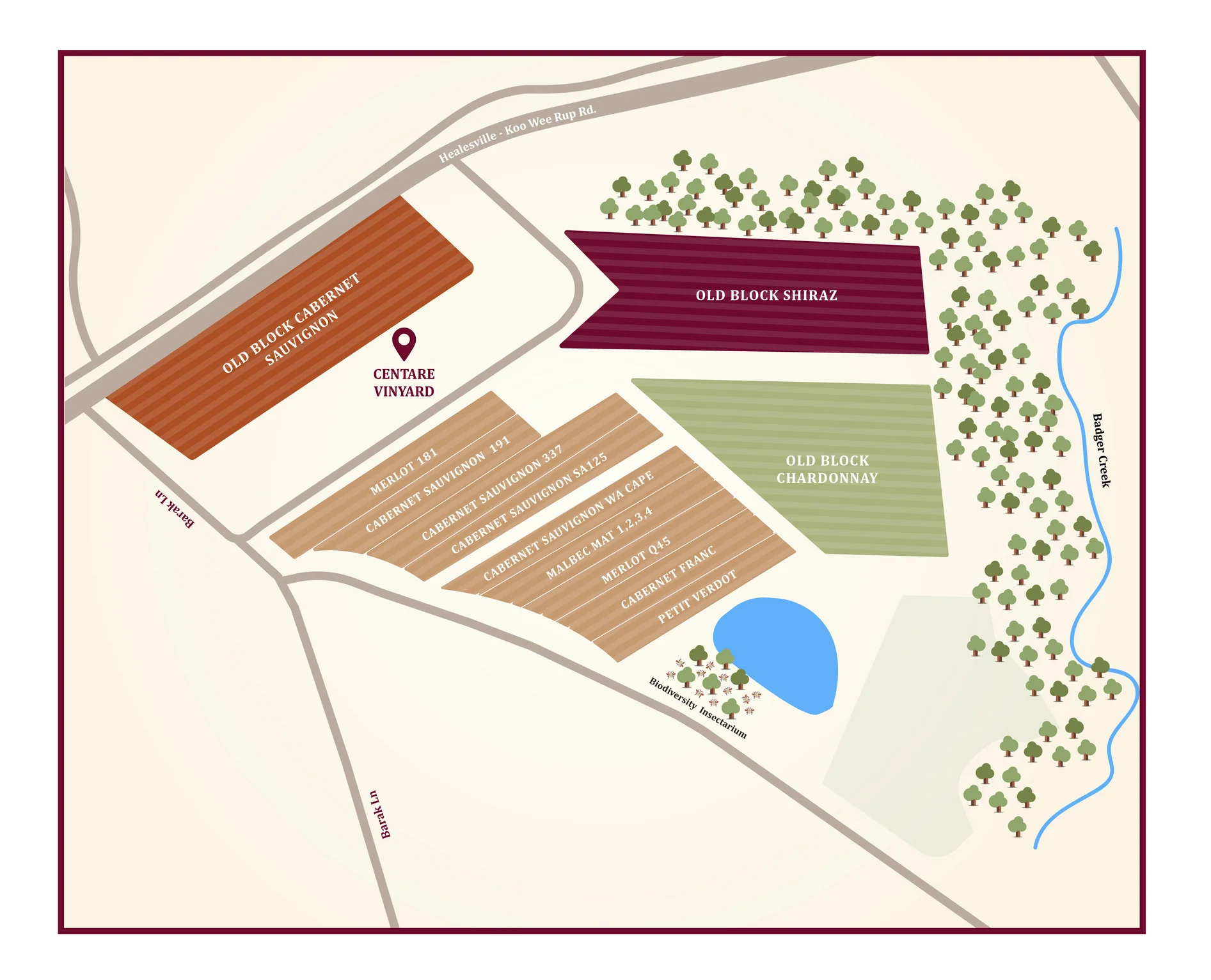 酒庄的葡萄园位于Warramate 山麓的平缓朝北坡地,海拔约100米,毗邻清澈的Badger Creek。土壤为排水性良好的灰色河流冲积壤土,为葡萄藤提供了理想生长基础。园内保留着种植于1998年、未经嫁接的约2公顷地块,涵盖霞多丽(克隆I10V5)、西拉(克隆PT23)与赤霞珠(克隆SA125)等经典品种,这些果实每年用于酿造酒庄标志性的“Old Block”系列酒款。